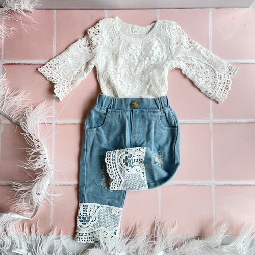 Lace Top & Jeans Set